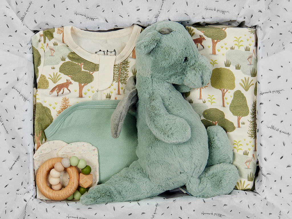 We've hunted high and low to find you the best collection of gifts for a newborn baby boy. Choose one of our hampers that we have thoughtfully curated for you or gift a selection of treasures unique to them that they'll love.